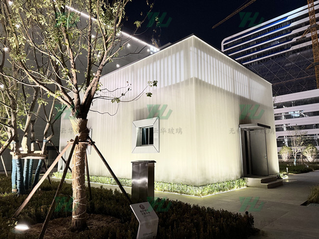 選用K25*90*8超白香梨紋噴砂U型玻璃